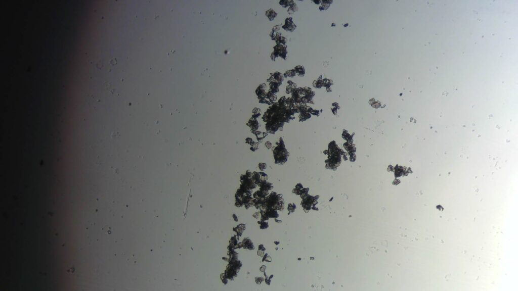 Video de un pelo pigmentado, de la nariz, que se puede ver en esta foto y después al microscopio en el video. Pelo mío del autor de este artículo.