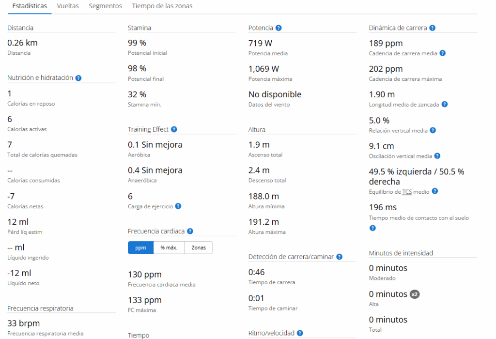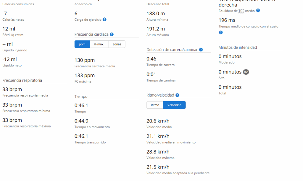 En estas imágenes, os dejo un ejemplo, de ejercicio a intensidad alta con mis datos.